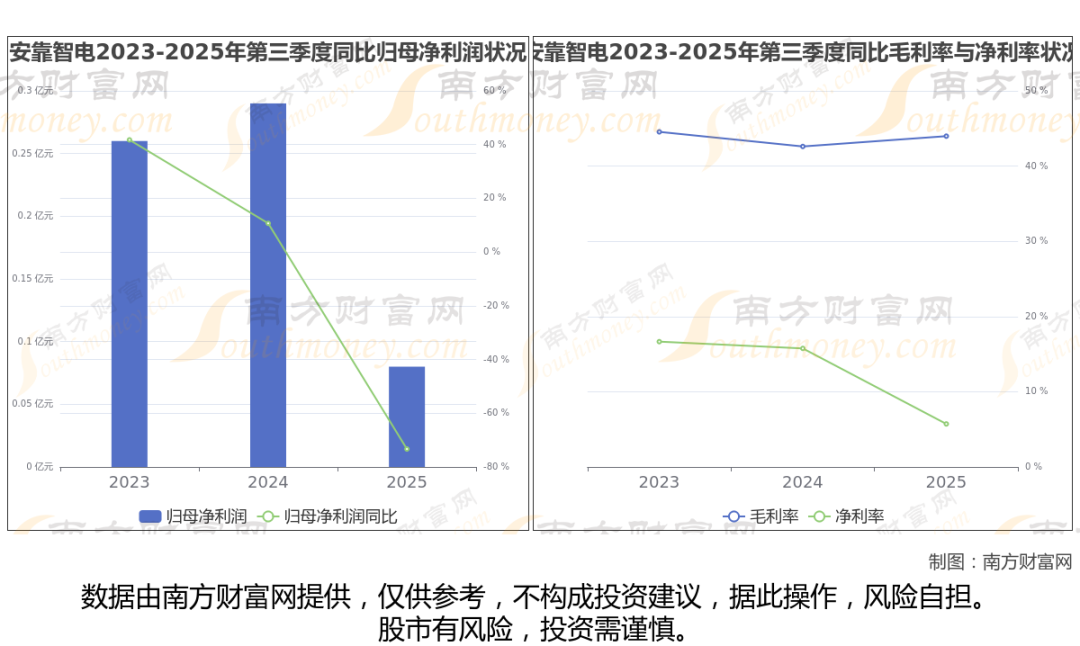 2025年第三季度季报显示,安靠智电公司实现净利润778.42万,同比上年增长率为-73.32%,毛利率43.98%,归属净利润778.42万,同比增长-73.32%。