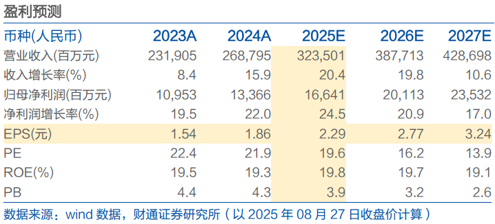 3Q25 指引延续:公司预告3Q25归母净利润42.46~46.99亿元,同比 15.41%~27.74%;预告3Q25扣非净利润35.96~42.99亿元,同比 13.86%~36.15%。延续此前稳健增长趋势。