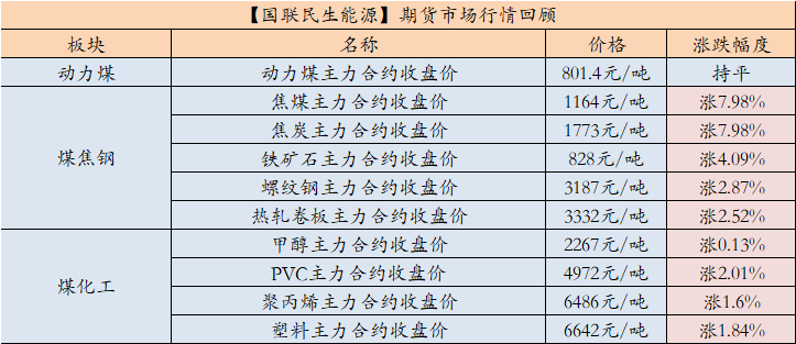 期货市场行情回顾