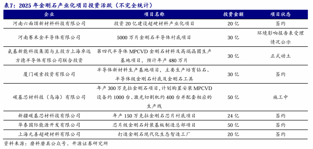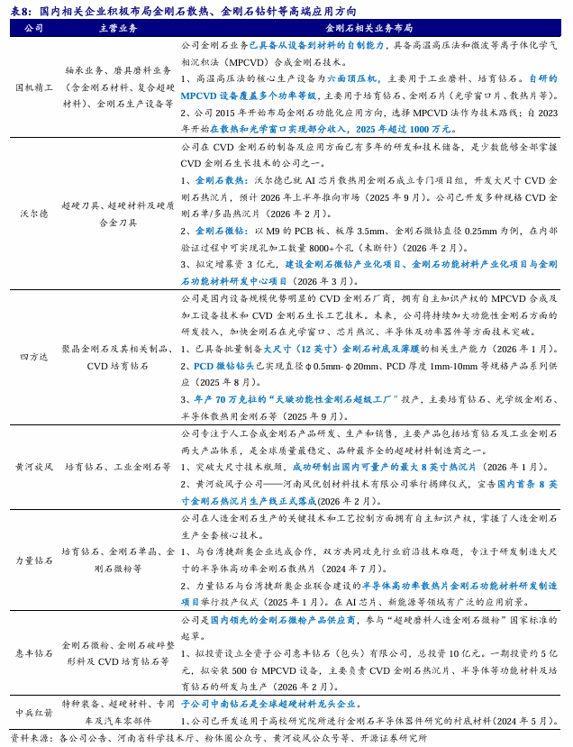 黄河旋风:建设国内首条8英寸金刚石热沉片生产线,2026年2月已投产。