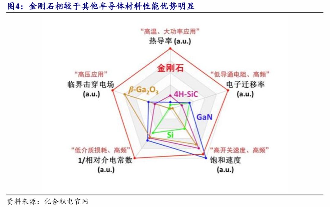 金刚石作为一种超宽禁带半导体,基于优异的导热性、载流子迁移率、击穿电场强度等关键特性,被视为半导体材料“六边形战士”及“终极半导体”。