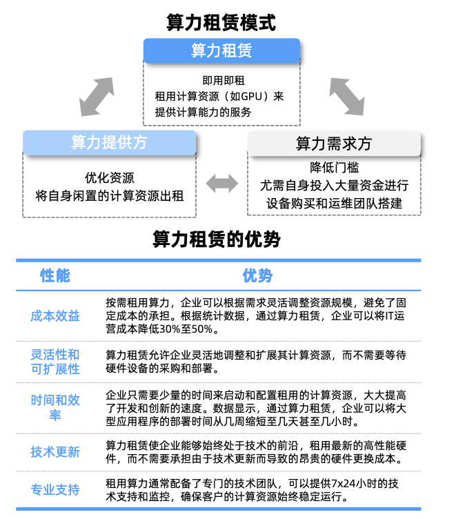 对于算力提供方,算力租赁有助于优化资源,可以将闲置的计算资源出租。
