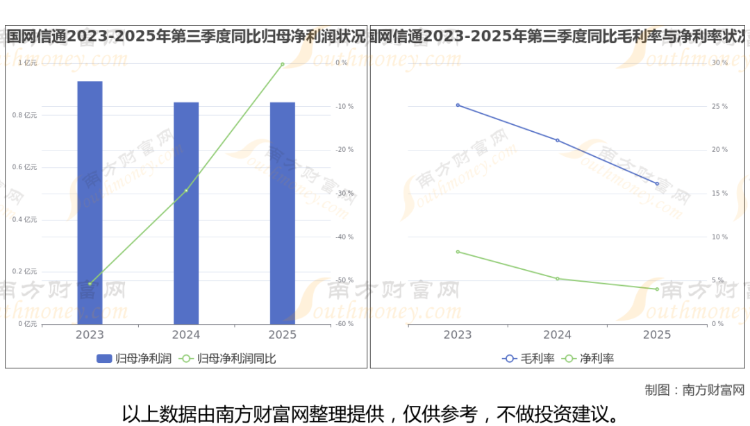2025年第三季度季报显示,国网信通公司实现净利润8525.2万,同比上年增长率为-0.26%,毛利率16.14%,归属净利润8525.2万,同比增长-0.26%。