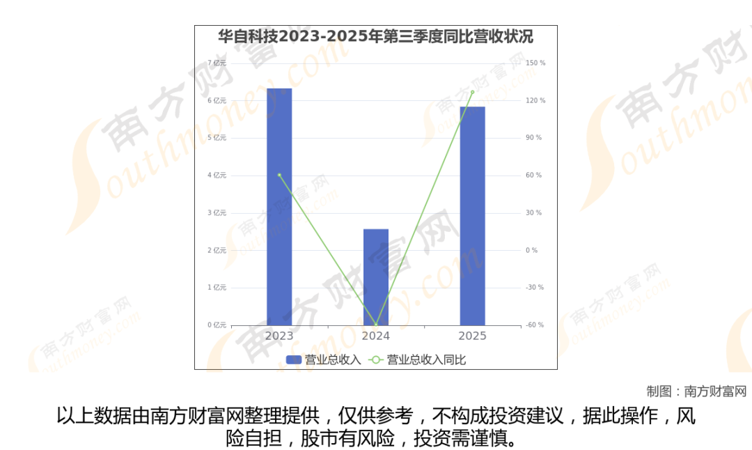华自科技披露了2025年第三季度财报。报告显示(如上图),华自科技2025年第三季度实现营收5.84亿元,同比126.96%。