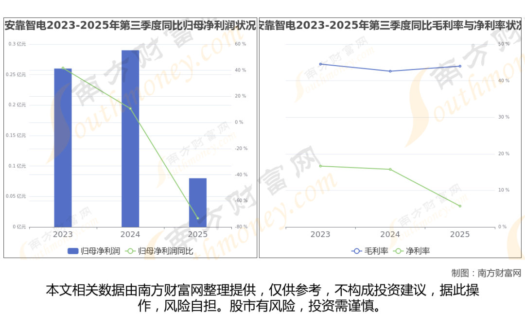 2025年第三季度季报显示,安靠智电公司实现净利润778.42万,同比增长-73.32%;毛利润为5700.65万,毛利率43.98%。