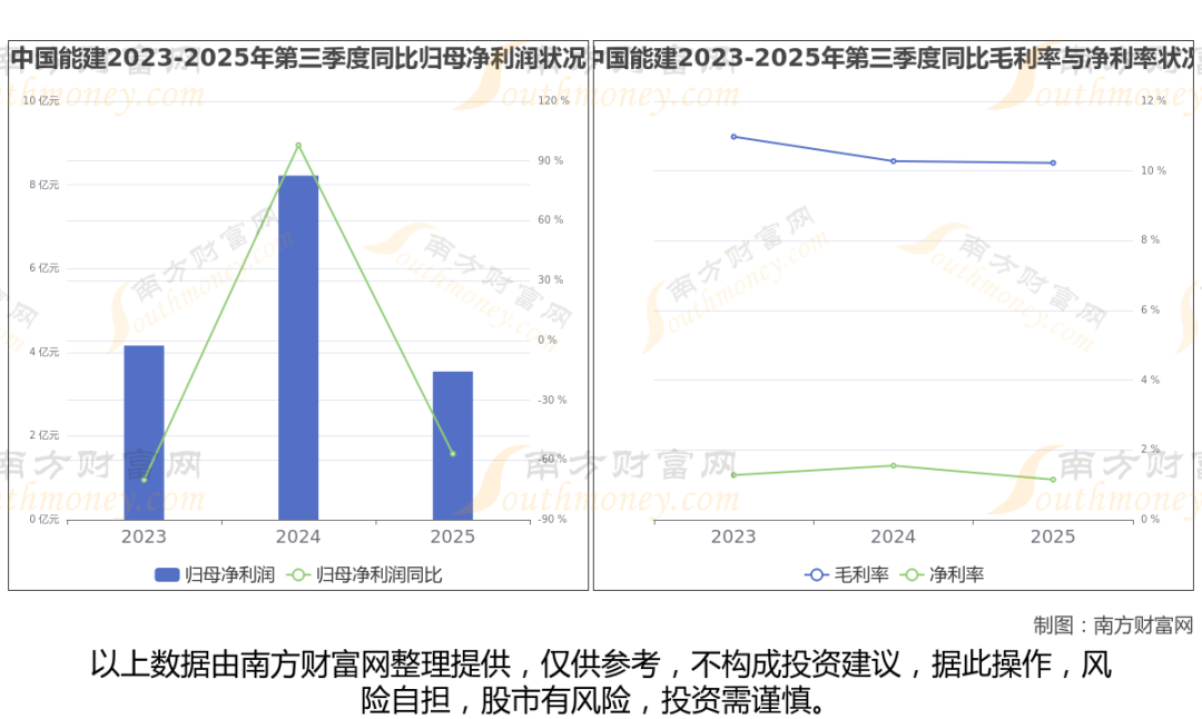 公司2025年第三季度季报显示,中国能建实现净利润3.54亿,同比增长-56.92%;毛利润为113.99亿,毛利率10.23%。