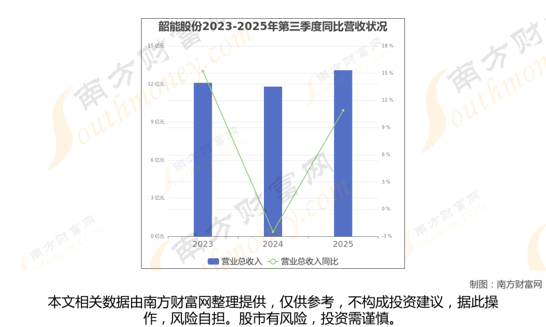 韶能股份披露了2025年第三季度财报。报告显示(如上图),韶能股份2025年第三季度实现营收13.09亿元,同比10.9%。