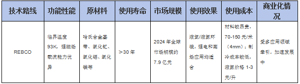 第二代高温超导带材是以REBCO为基础制备的工业化产品,具有较高的临界温度(液氮温区)、较高的载流能力、较高的临界场强、较高的力学强度,以及相对廉价的生产原料等优势,是目前综合性能最高、应用最广泛的高温超导材料。