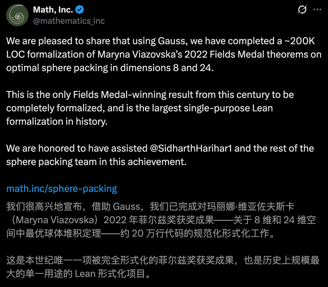 数学作为所有自然科学的底层语言,其工程化进度的加快,将直接传导至密码学、量子计算、航天轨道计算等强逻辑领域。
