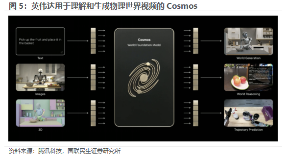 作为物理AI的底层核心,Cosmos是英伟达推出的开源物理AI世界基础模型,专为解决物理世界数据短板问题打造。1)预训练基础:基于海量真实视频、驾驶/机器人数据 3D模拟完成预训练,能理解物理世界的运行规律,实现语言、图像、3D、动作的跨模态关联。2)核心技能:支持内容生成、物理推理、轨迹预测(单张图片即可实现),可根据3D场景生成逼真视频、依据驾驶数据还原符合物理规律的运动,甚至能复刻物理世界中的罕见场景,解决真实数据采集慢、成本高的问题。3)核心价值:以合成数据为物理AI发展打下基础,为自动驾驶、机器人等场景提供充足的训练数据,弥补真实世界数据的不足。