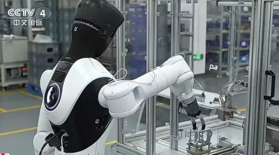 新一代轮式机器人“G2”正在进行上岗前真机测试(央视新闻截图)