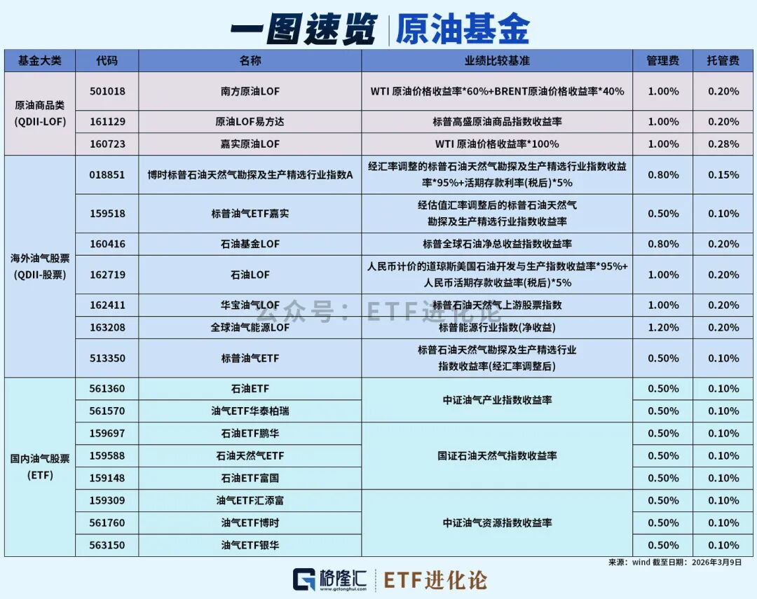 三类油气基金,本质对应三种资产:原油商品基金→直接投资油价;海外油气基金→投资全球能源公司;国内油气ETF→A股油气产业链。
