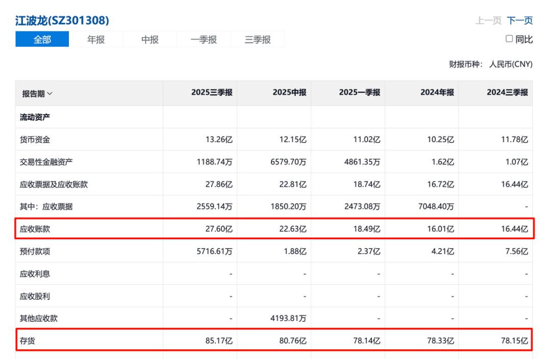 与此同时,三季报里,江波龙的存货达到85亿,接近总资产的44%。另外,到2025年9月末,公司应收账款余额已经接近28亿元,同比增加了60%以上。盈亏同源,现在是考验变现能力的时刻,毕竟存货不是永恒的。
