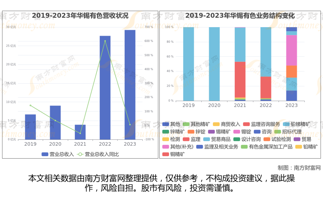 华锡有色:主要从事贸易业务,也是广西最大的综合性化工企业,主营锡、锌、铅锑等有色金属