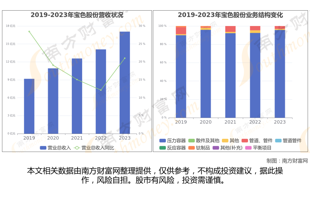 宝色股份于2014年10月10日在深圳证券交易所上市,公司主营业务为钛、镍、锆、钽、铜等有色金属及其合金、高级不锈钢和金属复合材料等特种材料非标压力容器装备的研发、设计、制造、安装、服务与技术咨询,以及有色金属焊接压力管道、管件的制造和安装。