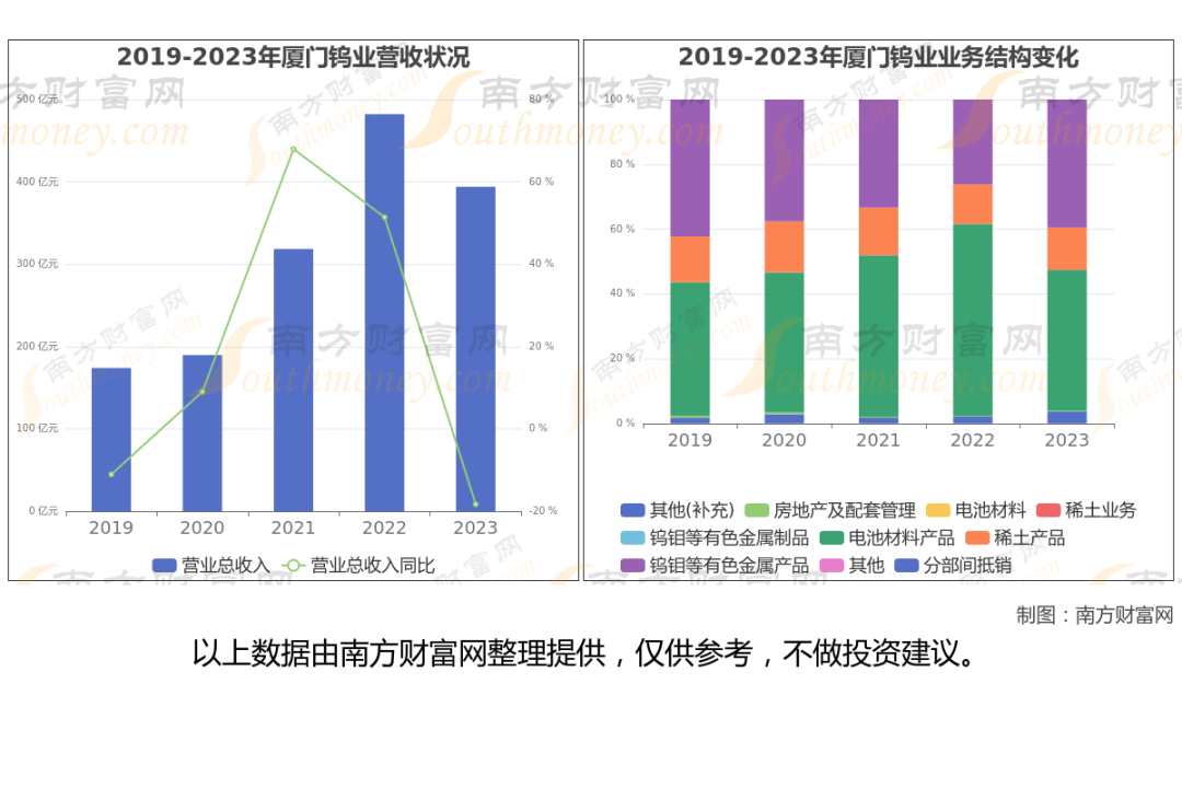 厦门钨业于2002年11月7日在上海证券交易所上市,公司主营业务为钨、稀土投资;钨及有色金属冶炼、加工;钨合金、钨深加工产品和稀有稀土金属深加工产品的生产和销售;粉末、硬质合金、精密刀具、钨钼丝材、能源新材料和稀有稀土金属的制造技术、分析检测以及科技成果的工程化转化;房地产开发与经营;企业管理及社会经济咨询等。