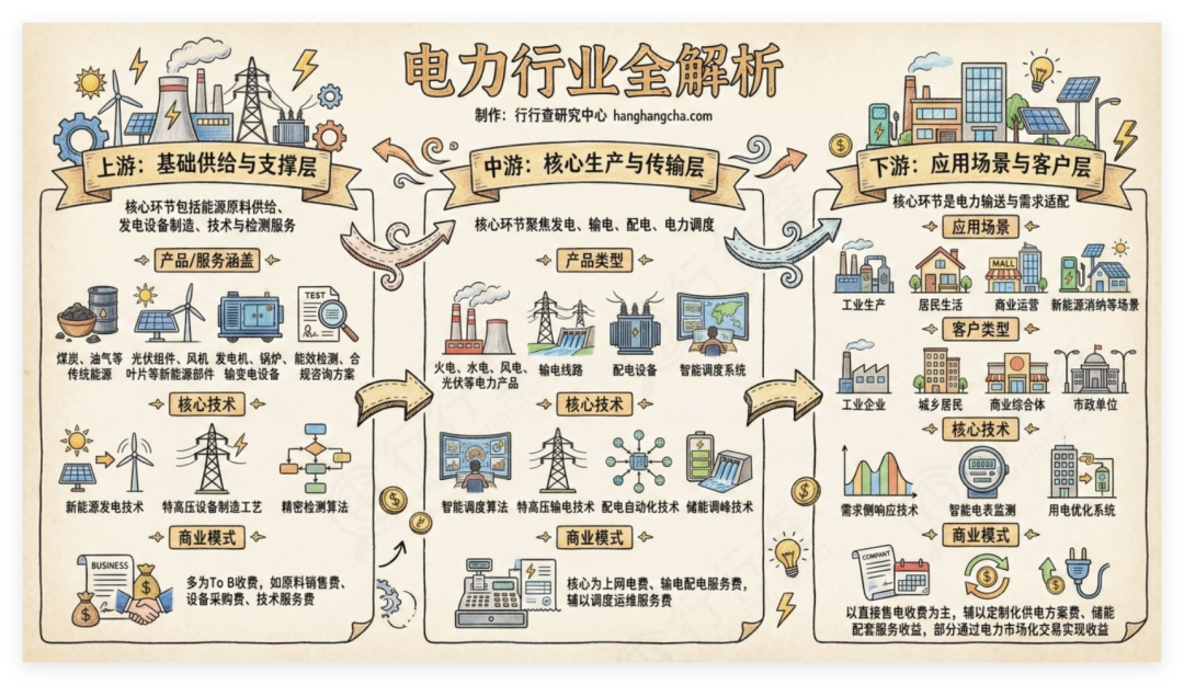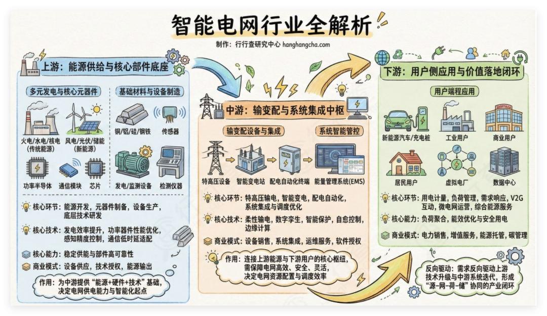 变压器产业链上游包括硅钢片、有色金属及绝缘材料等关键原料;中游涵盖设计、生产及测试环节,电力/配电/特种变压器等产品通过技术升级与规模扩张构建竞争力;下游覆盖电网、新能源、轨道交通、数据中心等多元场景,当前下游需求升级驱动产品向智能定制化和高效节能方向迭代,形成全链条产业闭环。