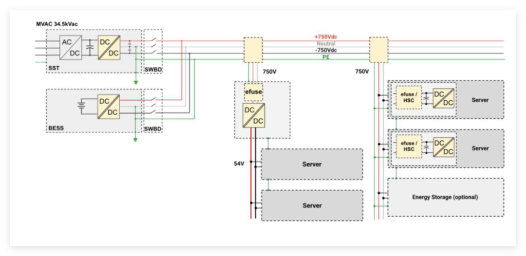 在英伟达发布数据中心800V供电架构白皮书中,明确指引SST:设计紧凑,节省空间,可大幅减少白区占地面积;更好支持算力密度增长。
