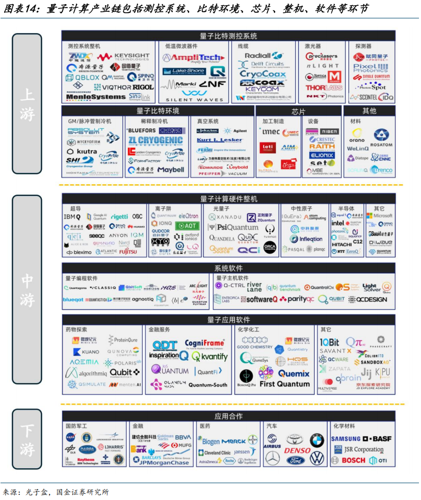量子计算上游包括测控系统、量子比特环境等,市场规模占比达40%。根据光子盒,量子计算上游为量子比特测控系统、量子比特环境、芯片等,是实现量子计算的基础,2024年量子计算上游环节占全市场规模的40%。