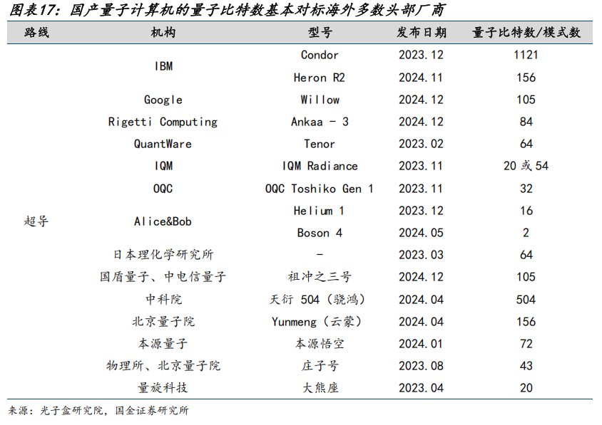 2.2量子计算整机:核心技术参数提升,自主可控有望持续推进
