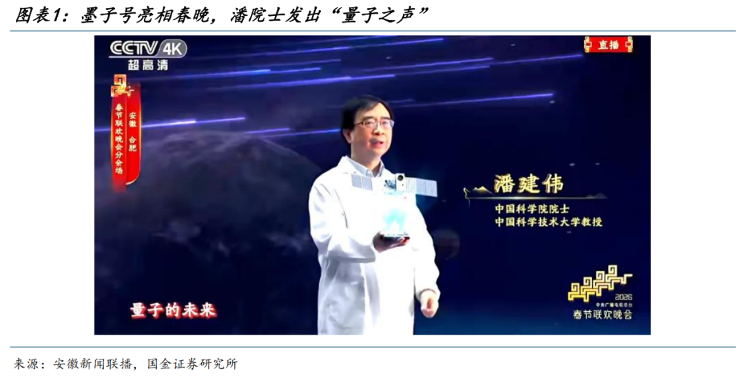 墨子号亮相春晚,潘院士发出“量子之声”,量子走出实验室。2026年央视春晚合肥分会场,潘建伟院士手捧“墨子号”模型,掷地有声地说:“量子的未来就在我们手中”。从2016年酒泉卫星发射中心腾空而起的世界首颗量子科学实验卫星,到2026年春晚合肥分会场的聚光灯下,这不是一次简单的亮相,这是安徽量子产业向全球发出的宣言。在我们看来这句话的核心要义主要是量子技术进步和产业趋势已显。