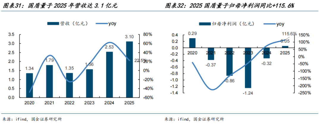 25年收入达3.1亿元,业绩扭亏为盈。受益于量子计算订单确收,国盾量子2025年营收达3.1亿元,同比增长22.5%,归母净利润达0.05亿元,实现扭亏。