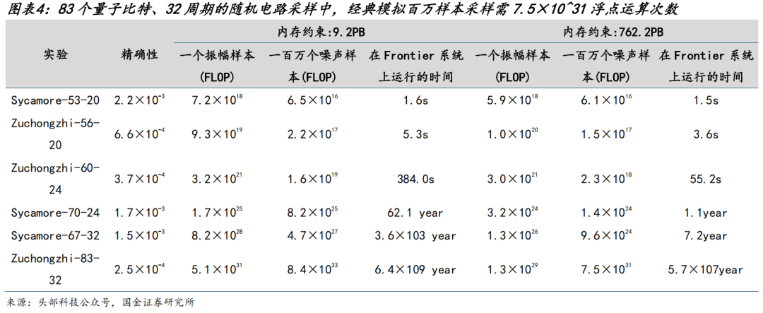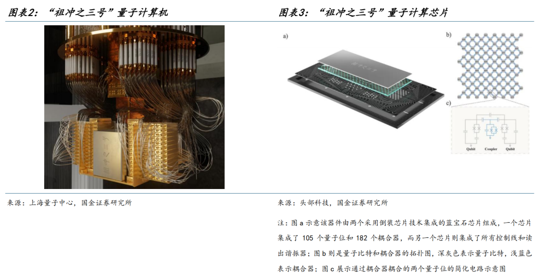 25年3月“祖冲之三号”问世,再一次打破超导体系量子计算优越性纪录。25年3月中国科学家成功构建目前最高水准超导量子计算机之一——105比特超导量子计算原型机“祖冲之三号”,实现了对“量子随机线路采样”任务的快速求解,速度比目前最快的超级计算机快15个数量级,超过谷歌2024年10月公开发表的最新成果6个数量级,再一次打破超导体系量子计算优越性纪录。