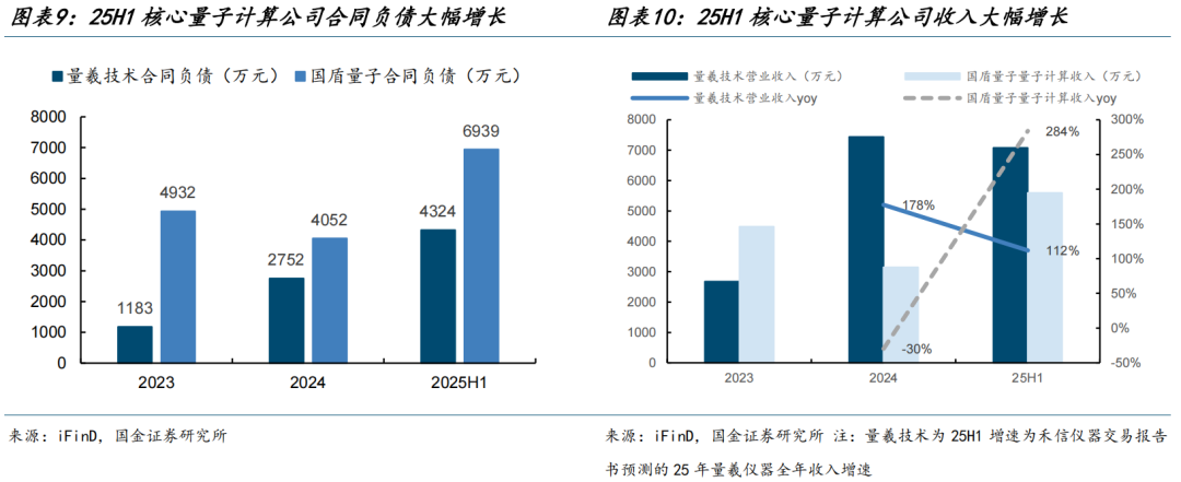 核心公司收入快速增长:25H1量羲技术、国盾量子(量子计算领域)实现收入分别为7080万元(已接近24年全年值)、5596万元( 284%),景气拐点显现。