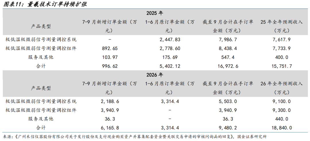 核心设备厂商量羲技术订单持续扩张,产业趋势加速。根据《广州禾信仪器股份有限公司关于发行股份及支付现金购买资产并募集配套资金暨关联交易申请的审核问询函的回复》,7-9月新增订单为6165.8万元(2026年交付),相对25H1的3314万元近翻倍增长,产业趋势加速。