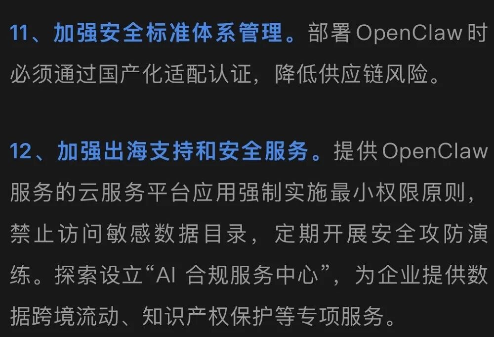 就在3月8日,工业和信息化部发布安全提示:OpenClaw在默认或不当配置下存在较高安全风险,“信任边界模糊”,可能被恶意接管,造成信息泄露甚至系统被控。无锡高新区的“12条”对此已有准备,措施中专门有讲“安全与合规”。