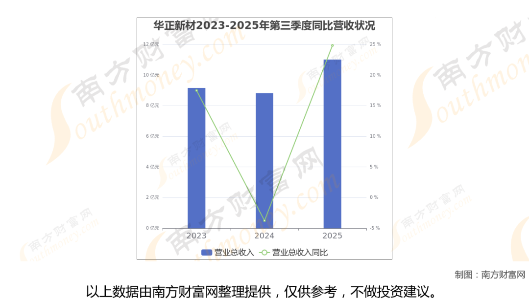 于2025年第三季度,华正新材披露了其业绩表现(如上图),其中主营业务收入11.01亿元,相较于去年同期24.84%。