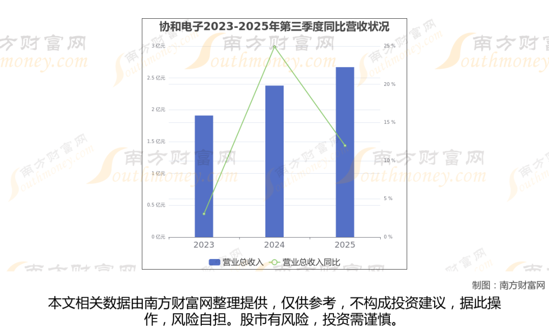 协和电子披露了2025年第三季度财报。报告显示(如上图),协和电子2025年第三季度实现营收2.67亿元,同比11.98%。