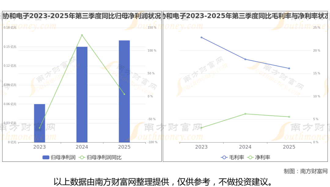 公司2025年第三季度季报显示,协和电子实现净利润1575.29万,同比增长4.96%;毛利润为4302.15万,毛利率16.12%。