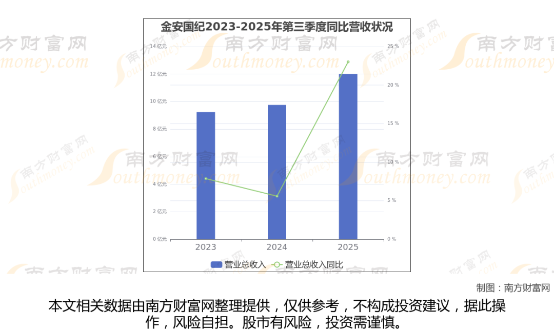 金安国纪披露了2025年第三季度财报。报告显示(如上图),金安国纪2025年第三季度实现营收12.01亿元,同比23.02%。