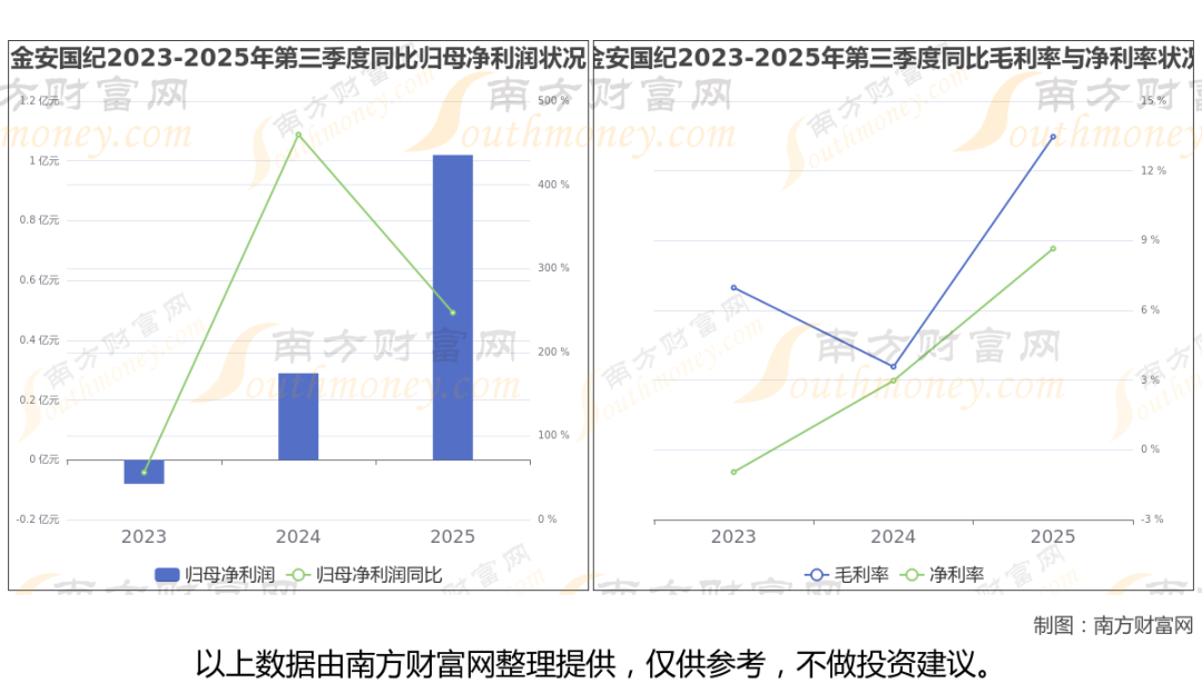 金安国纪2025年第三季度季报显示,公司实现净利润1.02亿,同比增长247.36%;毛利润为1.62亿,毛利率13.47%。