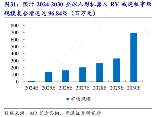 RV减速器:2024-2030年全球人形机器人RV减速器市场规模的CAGR超过96%。