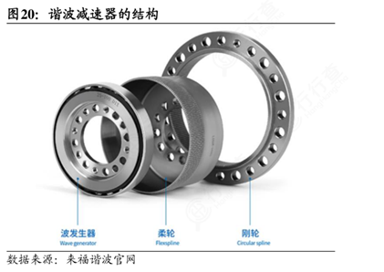 谐波减速器:体积小、重量轻,具备高传动比、高承载力、高传动精度和高传动效率的特点,特别适用于机器人关节传动系统。