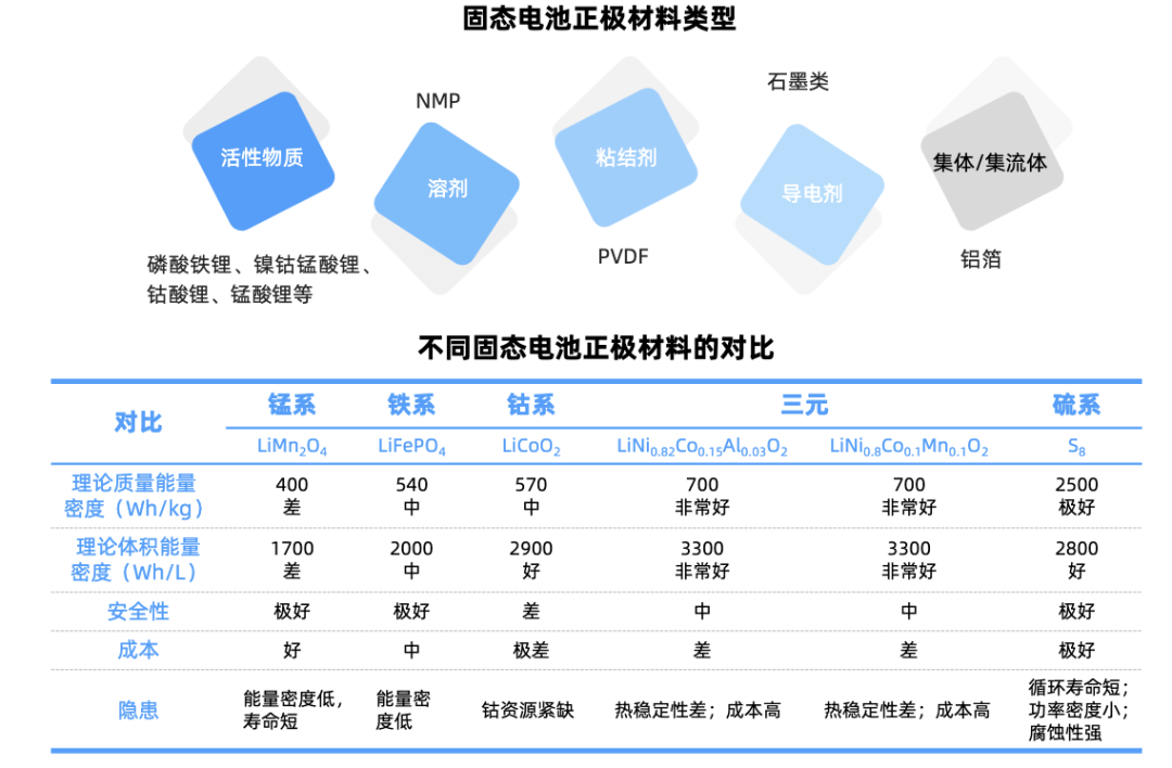 与液态电池相比,固态电池正极材料体系变化较小,固态正极材料主要以高镍三元体系为主。