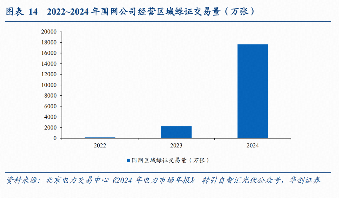 作为我国可再生能源电量环境属性的唯一凭证,绿证通过挂牌、双边协商及集中竞价等灵活的交易组织方式,有效化解了部分地区因绿电资源匮乏导致数据中心无法直接采购绿电的困境。从交易数据来看,国网区域绿证交易量呈现爆发式增长态势,2022年绿证交易量仅为145万张,到2024年已经增长至17640万张,CAGR高达1003%,反映了市场主体对绿证环境价值的认可。在绿电资源匮乏地区,绿证交易可以化解数据中心无法直接采购可再生能源的限制。