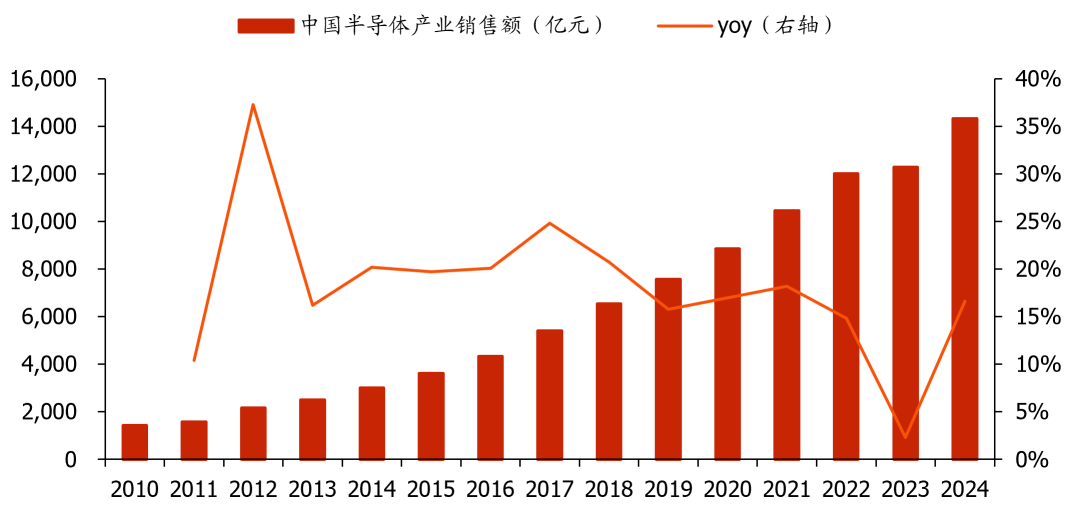 图表15:中国半导体产业销售额及同比增速