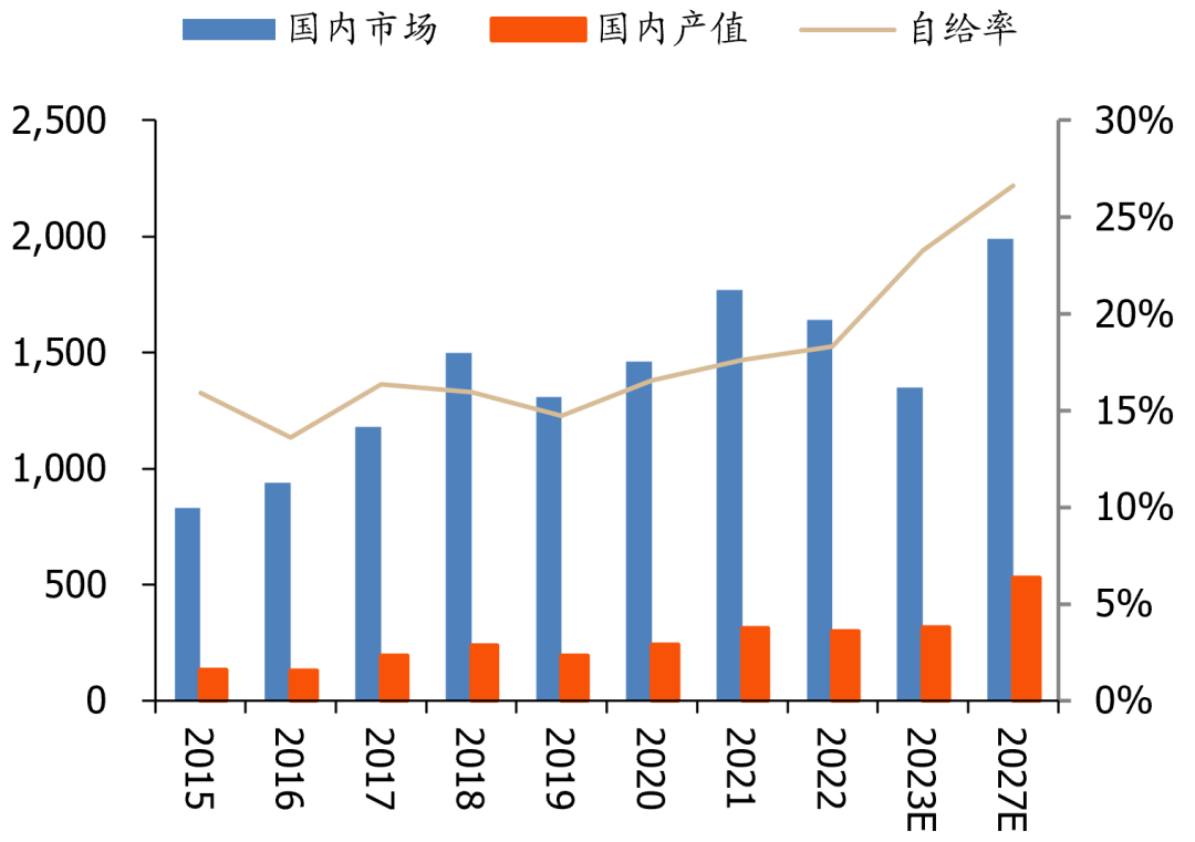 图表17:我国集成电路产业自给率情况(单位:亿美元)