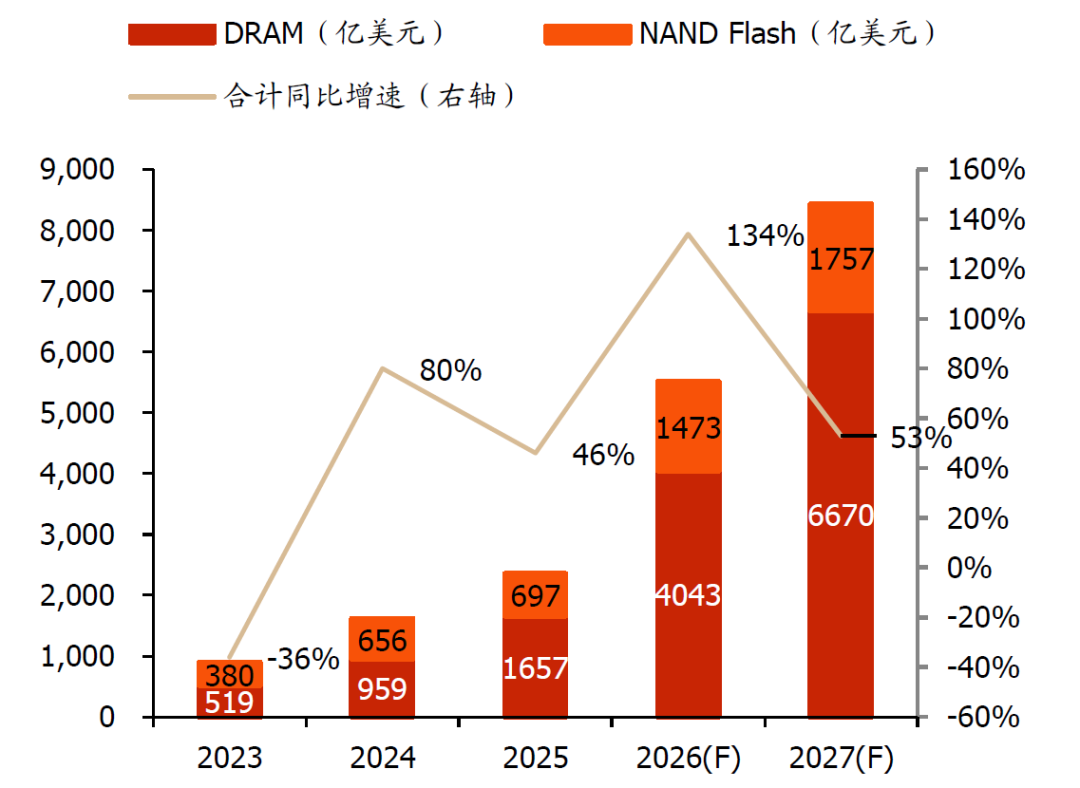 图表23:DRAM及NAND Flash市场规模预测