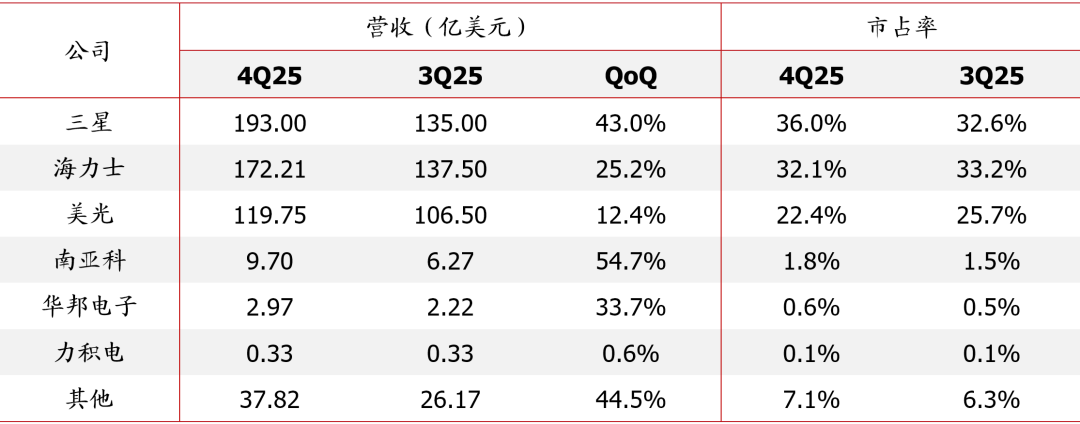图表24:2025Q4 DRAM市场竞争格局