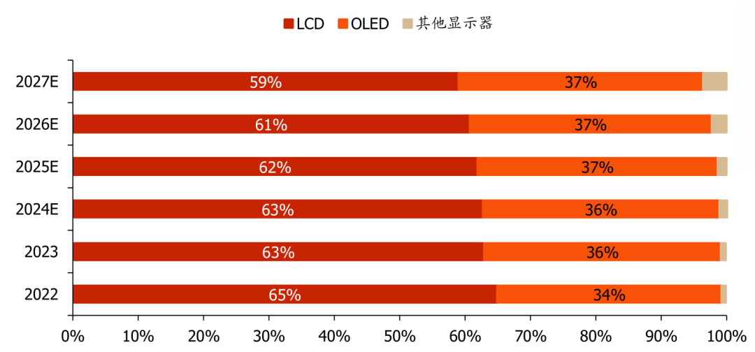 图表33:全球面板市场各类别占比及展望