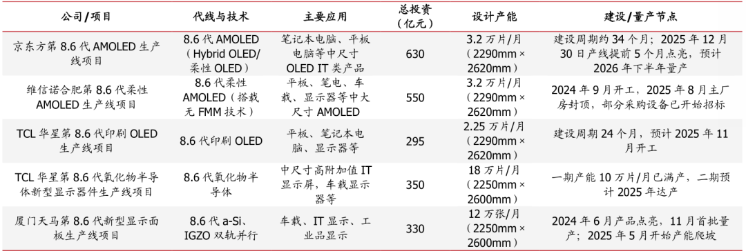 图表37:国内面板龙头高世代OLED及新型显示产线扩产情况