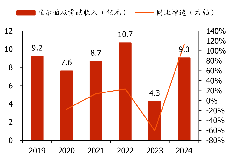 图表39:显示面板业务收入及同比增速