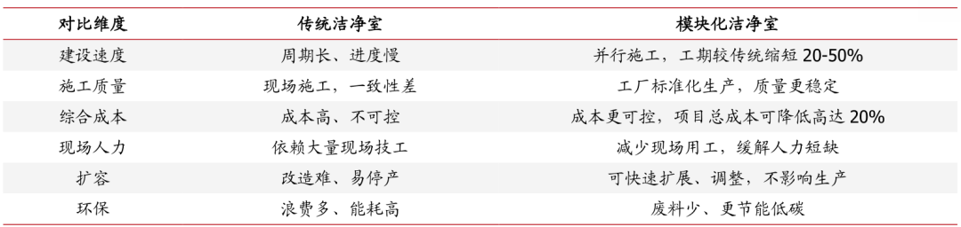 图表46:模块化洁净室与传统洁净室对比