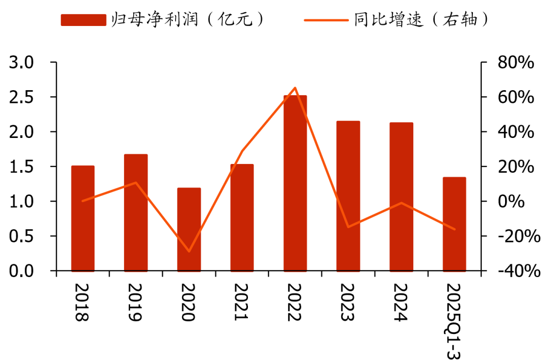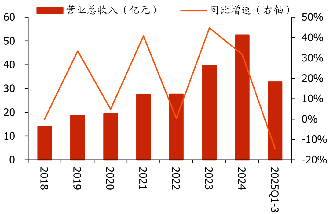 受境内需求下行影响,公司经营业绩短期承压。2018-2024年公司营业收入稳步扩张,CAGR达25%,2024年公司实现营收52.4亿元,同增32%;2025年前三季度受境内资本开支放缓、项目执行周期等影响,营收同降15%。业绩端,2023-2024年公司归母净利润有所收缩(维持在2.1亿元),预计主要因境内竞争加剧,毛利率有所承压(2022-2024年毛利率分别为14.7%/11.4%/10.0%);2025Q1-3公司实现归母净利润1.3亿元,同降16%。