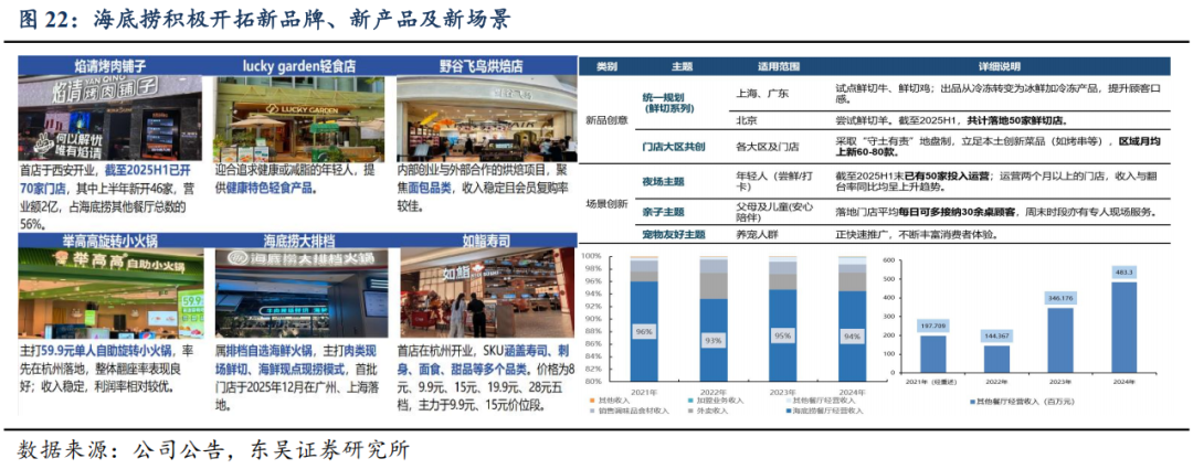 焰请烤肉铺子:首店于西安开业,截至2025H1已开70家门店,其中上半年新开46家,营业额2亿,占海底捞其他餐厅总数的56%;收入保持稳定,绝大多数门店持续盈利;
