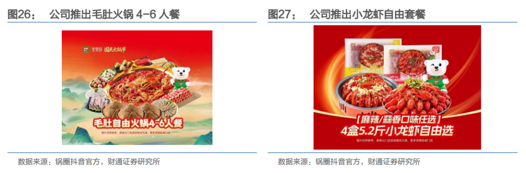 4)积极完善线上销售渠道,强化宣传口号与IP的深度融合: 在渠道布局上,公司积极完善线上销售体系,深化与电商及即时零售平台的战略合作,联动美团、饿了么等实现“即时送货到家”。2025年上半年,公司通过构建多层级的抖音账号矩阵,并结合套餐产品券、全天候轮播、限时闪购及整点秒杀等多元化玩法,实现了超32亿次的平台曝光量,高效吸引消费者到店自提,构建了从线上流量获取到线下门店转化的完整闭环。
